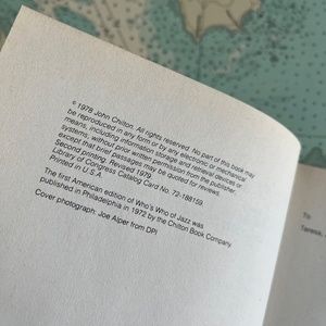 Vintage 1979 Who’s Who of Jazz by John Chilton. Storyville to Swing Street. Hardcover with dust jacket, jacket shows a little wear (see photos). Measures approx. 9.5" x 6.5" x 1.25".
