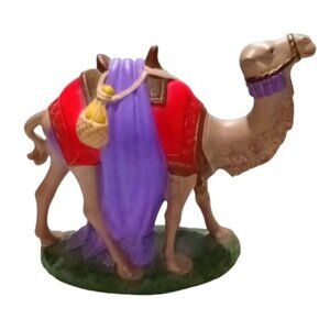 A pair of beautifully hand-painted 9-inch standing camels (from Holland Mold) ceramic camel figurine. Camels feature a multicolor designs that will surely catch the eye of any collector. Perfect for the holiday season, especially Christmas, these nativity camels would be a great addition to any collection.