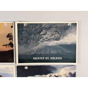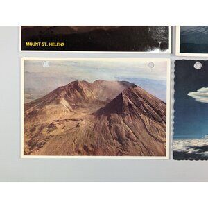A little lot of 4 keepsake photo postcards of the eruption of Mount St Helens in Washington in May of 1980. All 4 cards have holes punched in them, no doubt so they could be kept in a binder.