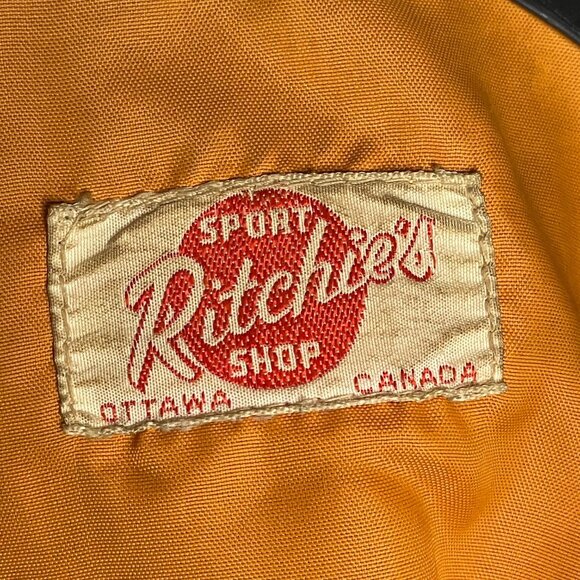 This beautiful vintage leather University of Ottawa varsity jacket, originally from Ritchie’s Sport Shop in Ottawa is in very good used condition. Thick, heavy high quality leather in U of O's maroon colour with orange satin-like lining. Some normal signs of wear around zipper, cuffs, etc. (please refer to photos). Original Ottawa U chenille patch on left breast; no other school / faculty patches, so perfect for any alumnus.