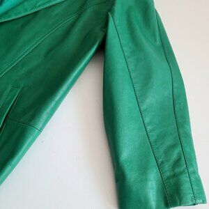Vintage 1980s 1990s Bagatelle Margaret Godfrey bright green leather jacket.