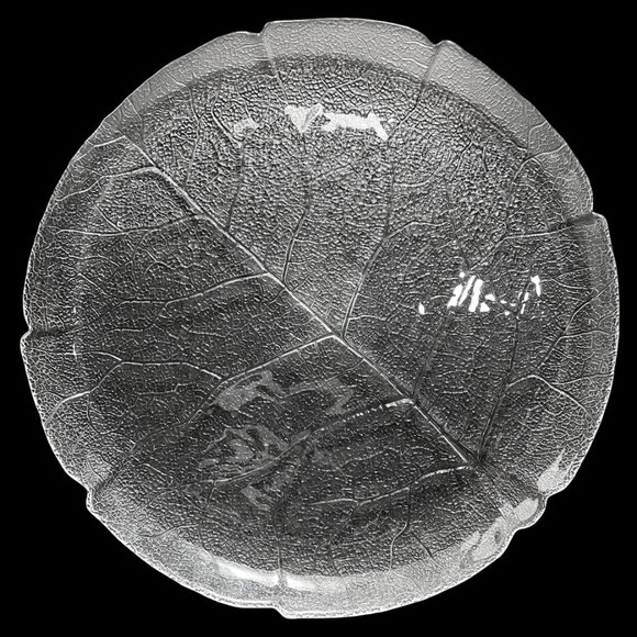 Vintage 1980s Arcoroc France Aspen 13" Wide Platter - Flower Clear Embossed Leaf