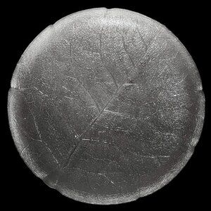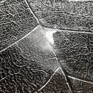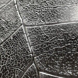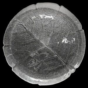 Arcoroc "Aspen" clear pressed tempered glass dinner plate, featuring a raised leaf pattern, the pattern is on the outside of the plate and the inside of the plate is smooth.