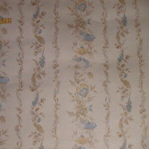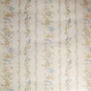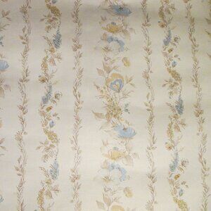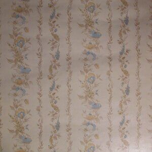 Vintage 1980s Blue and Beige Floral Stripe Wallpaper