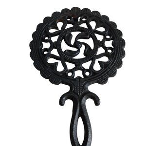Vintage 1980's Canada Forge Reproduction Pin Wheel Cast Iron Footed Trivet