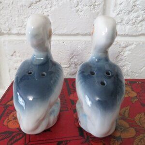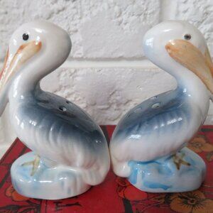 Vintage 1980's Florida Souvenir Ceramic Pelican Salt and Pepper Shaker Set. This set is in very nice condition, with great color and original plugs in the bottom. They appear to have never been used. Each measure approximately 3 and 3/4 inches tall.