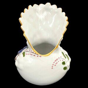 A lovely unique ceramic hen from Portugal, hand painted with floral motifs and with a bright ted comb and wattle. Match the classic Portugal Luck Rooster, the hen is very hard to find.