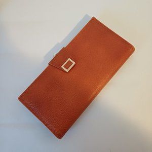 Elegant and pretty vintage 1980s brown genuine leather wallet coin purse. High quality, well made wallet. Made in Canada. Multiple compartments for cash, cheques, coupons, cards and coins. Double kiss lock and snap fastener lock. Good condition. Very mild signs of wear. Approx. 7'' long and 3.5'' wide.
