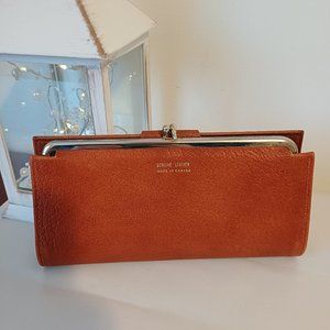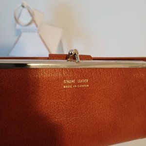 Vintage 1980s Genuine Leather Double Kiss Lock Brown Wallet Purse Made in Canada