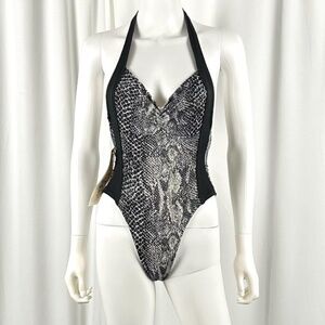 Vintage 1970’s 1980’s ‘Krystal K International Sport’ Python Snake Print One Piece Bathing Suit • Halter • High Leg Bikini • Low Open Back • Deadstock • XS/S