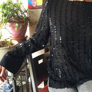 Vintage 1980s Long Sleeve Sheer Black Sequin Evening Blouse -- Not Too Sheer. In excellent condition. Model is 5'6" and size 2-4.