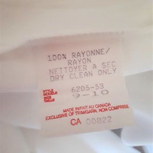 Label says Lori Ann Montreal, 100% Rayon, Made in Canada, Size 9/10 on tag. Measures 38" around bust, 38" around hip, length is 49" from shoulder to hem. Fabric does not stretch. Shown on a size small model with 34" bust.