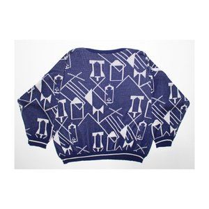 π Vintage 1980βs Navy White Geoprint Abstract Art Acrylic Knit Sweater Made In Canada Boxy Fit π