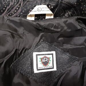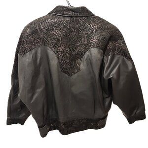 Vintage 1980s Paris Sport Club Paisley Leather Suede Jacket Womens L Black Korea