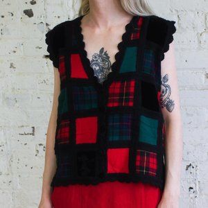 80's Knit Plaid and Velvet Cardigan