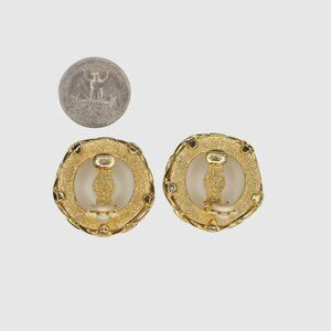 Vintage 1980s Pearl and Enamel Gold-Tone Clip-On Earrings