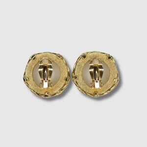 Step back in time with these stunning vintage earrings, dating back to the glamorous 1980s. These clip-on earrings feature a lustrous faux pearl centerpiece surrounded by a luxurious gold-tone setting. The elegant design is accented with vibrant enamel details in rich shades of red, blue, and green, adding a touch of timeless sophistication.