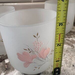 Vintage 1980s Pink Iris Italian Satin Frosted Glass Pitcher, 2 Wine & 3 Tumblers