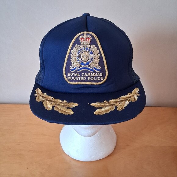 Vintage 1980s Royal Canadian Mounted Police Blue Snapback Trucker Hat RCMP