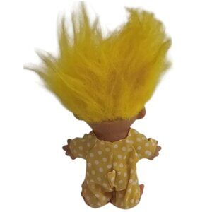 Charming troll doll with vibrant yellow hair and a playful outfit. Perfect for imaginative play and collecting.
