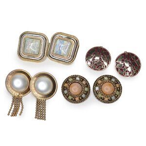 Vintage 1980s Statement Clip Earrings Lot of 4 Pairs Large Disco Retro Glam