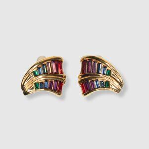 Materials: Gold-tone metal, rainbow baguette crystals, clear pave crystals