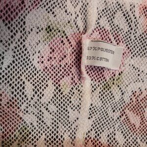 Step into timeless elegance with this vintage Hanro nightgown, likely from the mid-to-late 1980s, proudly Made in Switzerland. Crafted in a romantic lightweight, slightly transparent floral lace blend (67% polyester / 33% cotton), the gown features charming rose/orange roses pattern with four delicate buttons at the front, plus the original two spare buttons still tucked inside.