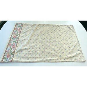 Vintage 1980s pillowcase, beige, pink pastel floral, single pillow sham