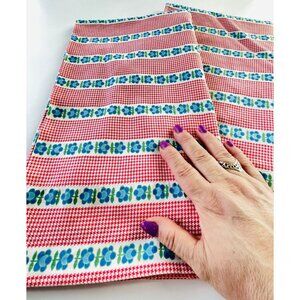 Adorable set of 80s pillowcases, red houndstooth with blue and green flowers. 2 pairs available, price is for one pair. Check my other listings for the other pair. material is likely cotton blend. very good vintage pre-owned condition with minimal wear, minimal fading. There is a faint stain on one of them and a hole the size of a pin, please see pictures for accuracy. measurements are 35" x 17.5", although a bit narrow, they would probably fit a standard size pillow. Please measure your pillows insure proper fit. This item has been laundered using scent free detergent and without fabric softener. ***************************** VINTAGE CONDITION: All my items are vintage and have been carefully curated. However, as they were previously loved, they may have some wear. I do my best to accurately disclose and photograph in the listings. Please contact me if you have any questions or concerns.