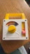 Colorful music box with rainbow design. Vintage from 1981, nostalgic toy! Works but music is slower than it should be. Features yellow handle and pink slider.