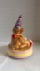 Adorable vintage ceramic music box from the Bialosky Friends line, made by Hummelwerks / Loyal & True Japan. This piece features Ralphie the bear in a striped birthday hat, sitting with a festive cake and a gift. The name “Ralphie” is embossed on the back of the base.