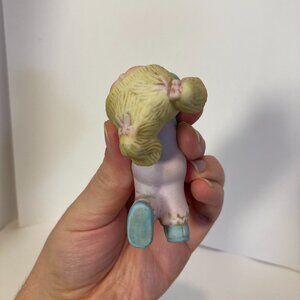 Vintage 1984 Cabbage Patch Kids Ceramic Figurine Girl Blonde Hair Pink Overalls