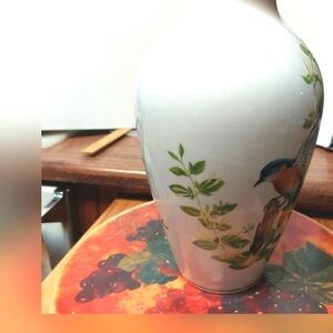 Vintage* A.J. Rudisill "The Bluebirds of Summer" Hand-painted Vase (signed). Limited first edition. Porcelain. Exclusively for The Franklin Mint. 1985. Stunning life-like detail and colour.