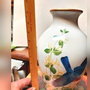 Vintage* A.J. Rudisill "The Bluebirds of Summer" Hand-painted Vase (signed). Limited first edition. Porcelain. Exclusively for The Franklin Mint. 1985. Stunning life-like detail and colour.