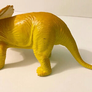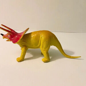 Vintage 1985 Imperial Yellow Red Triceratops Dinosaur 9 in Plastic Toy Figure