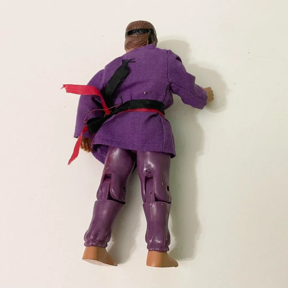 This figure is pre-owned and in rough condition. The plastic on the legs is sticky. There is some marks, scratches and stains on the figure. I don't think its the original belt, its just 2 different pieces of fabric tied together. His one leg joint is a little loose, but it might be due to the leg action mechanism. Please see all photos for exact item.