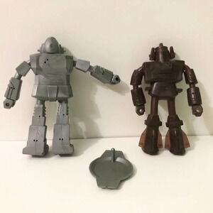 Both figures are pre-owned and in used condition. The grey robot has 1 arm that does not bend anymore. There are some stains, marks and wear on both figures. This only comes with the 1 shield. Please see all photos for exact items.