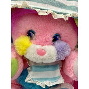 Vintage 1985 Mattel Popples Baby Cribsy Pink Plush With Bib, Bonnet & Booties