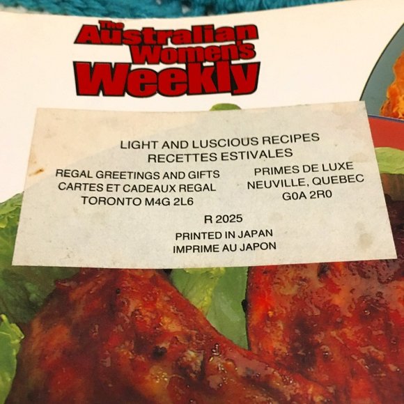 Good preowned softcover 'Australian Woman's Weekly Light & luscious Summertime Cookbook' by Pamela Clark. Has a tiny bit of wear, but very good given the age. Printed in Japan. Bundle to save.