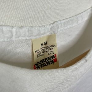 Authentic 1987 Girls, Girls, Girls Tour tee featuring Tommy Lee himself on the front. This example features super comfortable paper thin fabric. The graphics both front and back are still bold and colourful, and without major wear.