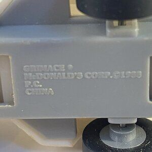 This set includes four original 1988 McDonald’s Happy Meal cars featuring Grimace (2), Hamburglar, and Ronald McDonald. Each character is molded into a colorful race car—white for Grimace, yellow for Hamburglar, and red for Ronald—decorated with the classic McDonald’s arches and maple leaf. Made of durable plastic, these toys were produced in China for McDonald’s Corp. and are stamped ©1988.