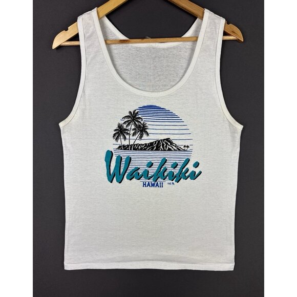 Vintage 1988 Waikiki Beach Hawaii White Tank Top Fits Small Nature Earth Art