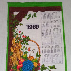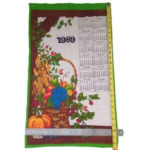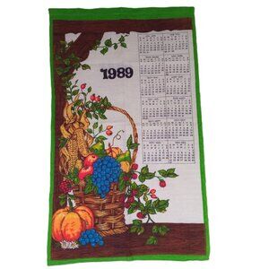 Vintage 1989 Linen Tea Towel Calendar Fall Autumn Basket Harvest Fruit Decor