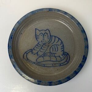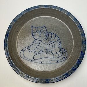 Vintage 1990 Eldreth Cat Pie Salt Glazed Pottery Plate Dish