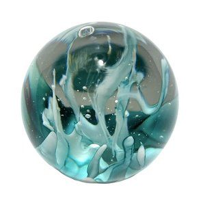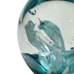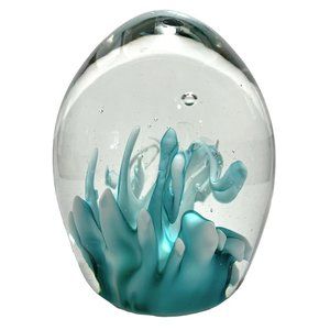 Vintage 1990s Abstract Sea Life Art Glass Paperweight Turquoise Clear Handblown