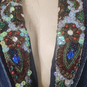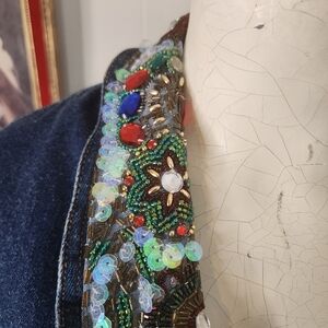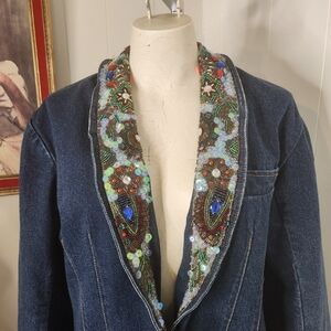 Vintage 1990s Beaded Sequin Denim Jean Jacket Blazer