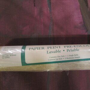 Vintage 1990s Primrose Beige Leaf Vine Motif Wallpaper. Pre-pasted, washable, peelable. One roll = One Bolt = 10m x 51.8cm. Photos were taken under different indoor lighting conditions, hence the change in shade. AI photo shows a larger leaf pattern. Price per roll.