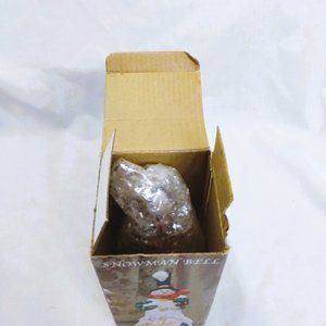 Vintage 1990's Ceramic Bisque Snowman Bell With Original Box
