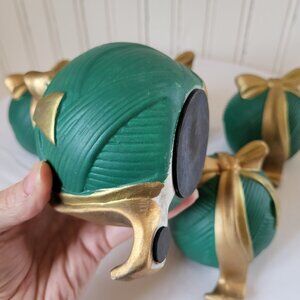 Vintage 1990s Christmas Stocking Hangers, green and gold, lot Of 5