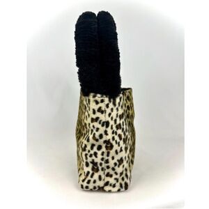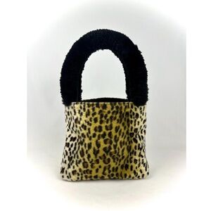 Vintage 1990’s Esprit Leopard Faux Fur Top Handle Mini Clutch Handbag • 2000’s Y2K • 1960’s Style • Small Bucket Bag • Fuzzy • Cheetah